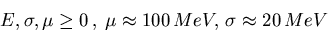 - Распределение по энергии в пучках является гауссовым, для одного пучка