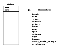 Each entry in the chrdevs vector, a device_struct data structure contains two elements; a pointer to the name of the registered device driver and a pointer to a block of file operations. This block of file operations is itself the addresses of routines within the device character device driver each of which handles specific file operations such as open, read, write and close. The contents of /proc/devices for character devices is taken from the chrdevs vector.