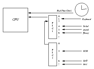 Some of the interrupts in the system may be hard-wired, for example, the real time clock's interval timer may be permanently connected to pin 3 on the interrupt controller. However, what some of the pins are connected to may be determined by what controller card is plugged into a particular ISA or PCI slot. For example, pin 4 on the interrupt controller may be connected to PCI slot number 0 which might one day have an ethernet card in it but the next have a SCSI controller in it. The bottom line is that each system has its own interrupt routing mechanisms and the operating system must be flexible enough to cope.