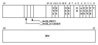 The access control information is held in the PTE and is processor specific; figure 3.2 shows the PTE for Alpha AXP. The bit fields have the following meanings:
