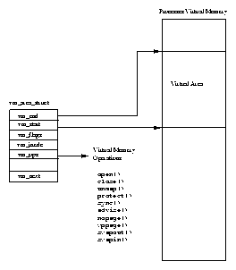 When an executable image is mapped into a processes virtual address a set of vm_area_struct data structures is generated. Each vm_area_struct data structure represents a part of the executable image; the executable code, initialized data (variables), unitialized data and so on. Linux supports a number of standard virtual memory operations and as the vm_area_struct data structures are created, the correct set of virtual memory operations are associated with them.
