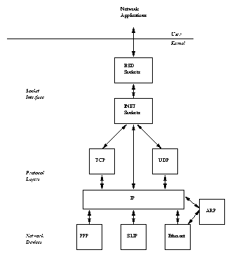 The TCP/IP protocols were designed to support communications between computers connected to the ARPANET, an American research network funded by the US government. The ARPANET pioneered networking concepts such as packet switching and protocol layering where one protocol uses the services of another. ARPANET was retired in 1988 but its successors (NSF1 NET and the Internet) have grown even larger. What is now known as the World Wide Web grew from the ARPANET and is itself supported by the TCP/IP protocols. Unix TM was extensively used on the ARPANET and the first released networking version of Unix TM was 4.3 BSD. Linux's networking implementation is modeled on 4.3 BSD in that it supports BSD sockets (with some extensions) and the full range of TCP/IP networking. This programming interface was chosen because of its popularity and to help applications be portable between Linux and other Unix TM platforms.