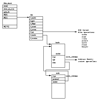 Firstly the requested address family is used to search the pops vector for a matching address family. It may be that a particular address family is implemented as a kernel module and, in this case, the kerneld daemon must load the module before we can continue. A new socket data structure is allocated to represent the BSD socket. Actually the socket data structure is physically part of the VFS inode data structure and allocating a socket really means allocating a VFS inode. This may seem strange unless you consider that sockets can be operated on in just the same way that ordinairy files can. As all files are represented by a VFS inode data structure, then in order to support file operations, BSD sockets must also be represented by a VFS inode data structure.