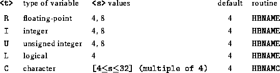 CHFORM = 'IEVENT, ISWIT(10), IFINIT(20), NEVENT, NRNDM(2)'in this case the Fortran type conventions are followed and the default sizes are taken, no packing is done. Note that to get a nice one-to-one correspondance between the COMMON and the