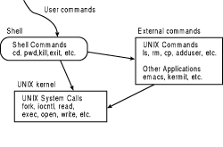If you are familiar with MS-DOS, you will recognize this relationship as almost identical to the relationship between a DOS user and the COMMAND.COM program. The only real difference is that in the DOS world, no distinction is made between the COMMAND.COM program and DOS (or to be more accurate, the DOS kernel).